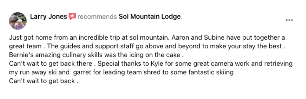 At Sol, we prefer the cachet of a small group, privately guided experience. Uptracks are smooth, downtracks are yours to script.